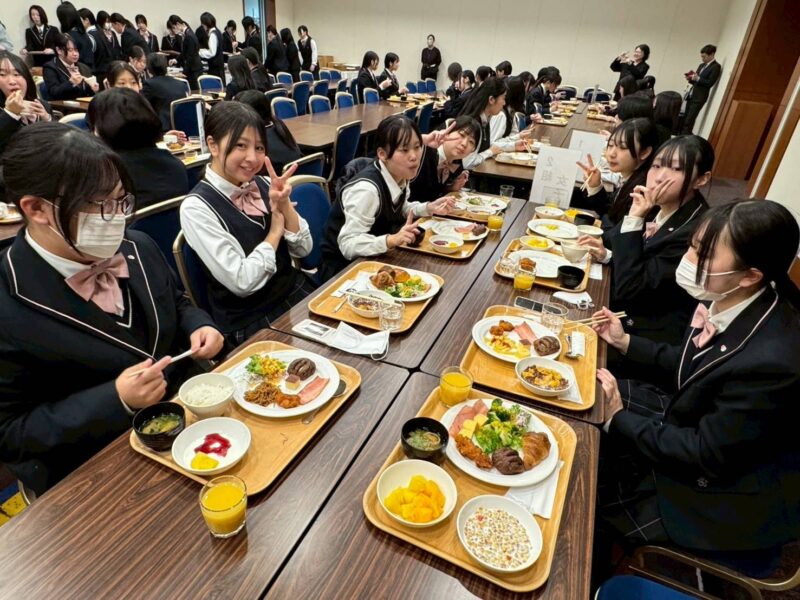 修学旅行最終日の朝、少し名残惜しさを感じながらも、生徒たちは元気に朝食をとり予定通り出発しました。