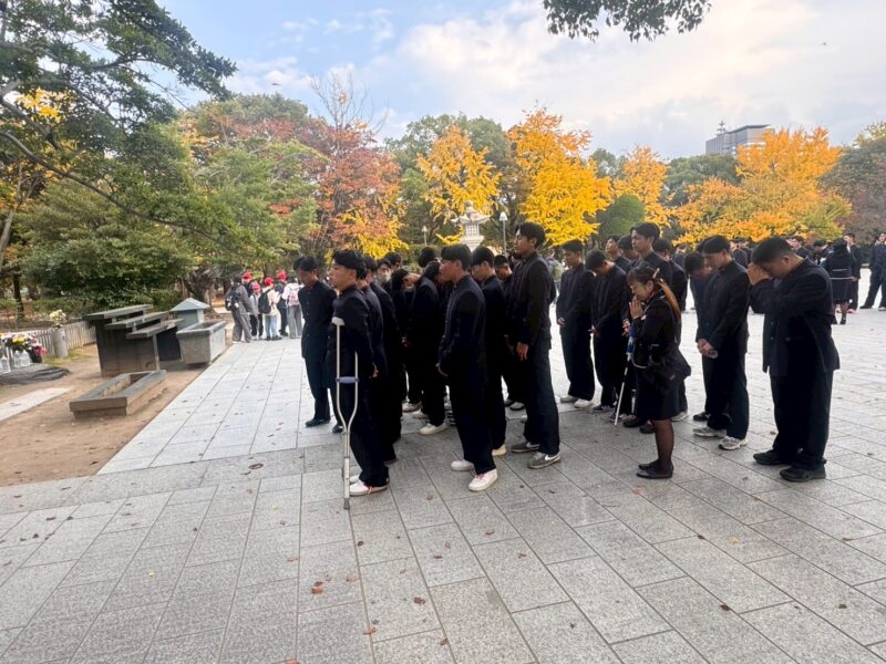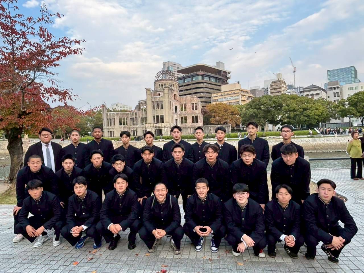 午後は広島市内へ移動し、原爆ドームと平和記念公園、そして平和記念資料館を見学しました。資料館では、原爆投下当時の写真や遺品、被爆者の証言などを通して、戦争の悲惨さと平和の大切さを深く学びました。また、公園内の慰霊碑・記念碑に手を合わせ、犠牲になられた方々への追悼と、平和への思いを新たにしました。