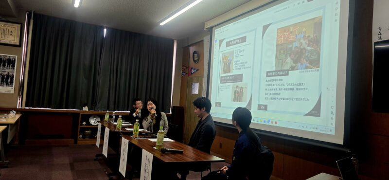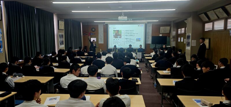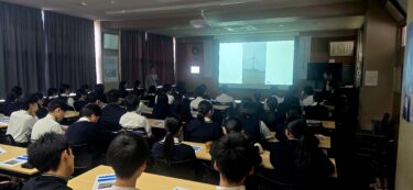 2学年普通科キャリアアップコースの生徒たちが、産学連携講座の一環として青森港振興協会会長の鳥谷部眞実氏をお招きして、「港の仕事と洋上風力発電」についての講義を実施しました。鳥谷部氏から洋上風力発電と港の仕事には、密接な関係があり、港湾は洋上風力発電の導入において重要な役割を果たしているというお話がありました。講演を聞いた生徒は、「港が単に船が入ってくるという場所だけではなく、物流や貿易を支える非常に多くの仕事で成り立っていることに驚きました。」など港の仕事に関心を持ったようです。続く再エネ対談では、進行役のファシリテーター伊藤さんから、若い講師3名の方に、「大学・学部選びの基準・仕事選びの基準は何でしたか?」や「学校の勉強の中で、仕事に『これは本当に役立っている』と感じるものは何でしたか?」など質問がでました。特に高校2年生の時期に何をしたら良いかでは、社会人になり「英語」の大切さを知ったので「英語」を勉強してくださいや、嫌いな科目に対してどのように対応していたかなど、3名の講師の方々から楽しく愉快な学生時代の体験談が話されました。今回で講演やフィールドワークは終了になります。次回からは、3月の探求発表会に向けて、各グループのまとめ作業になります。