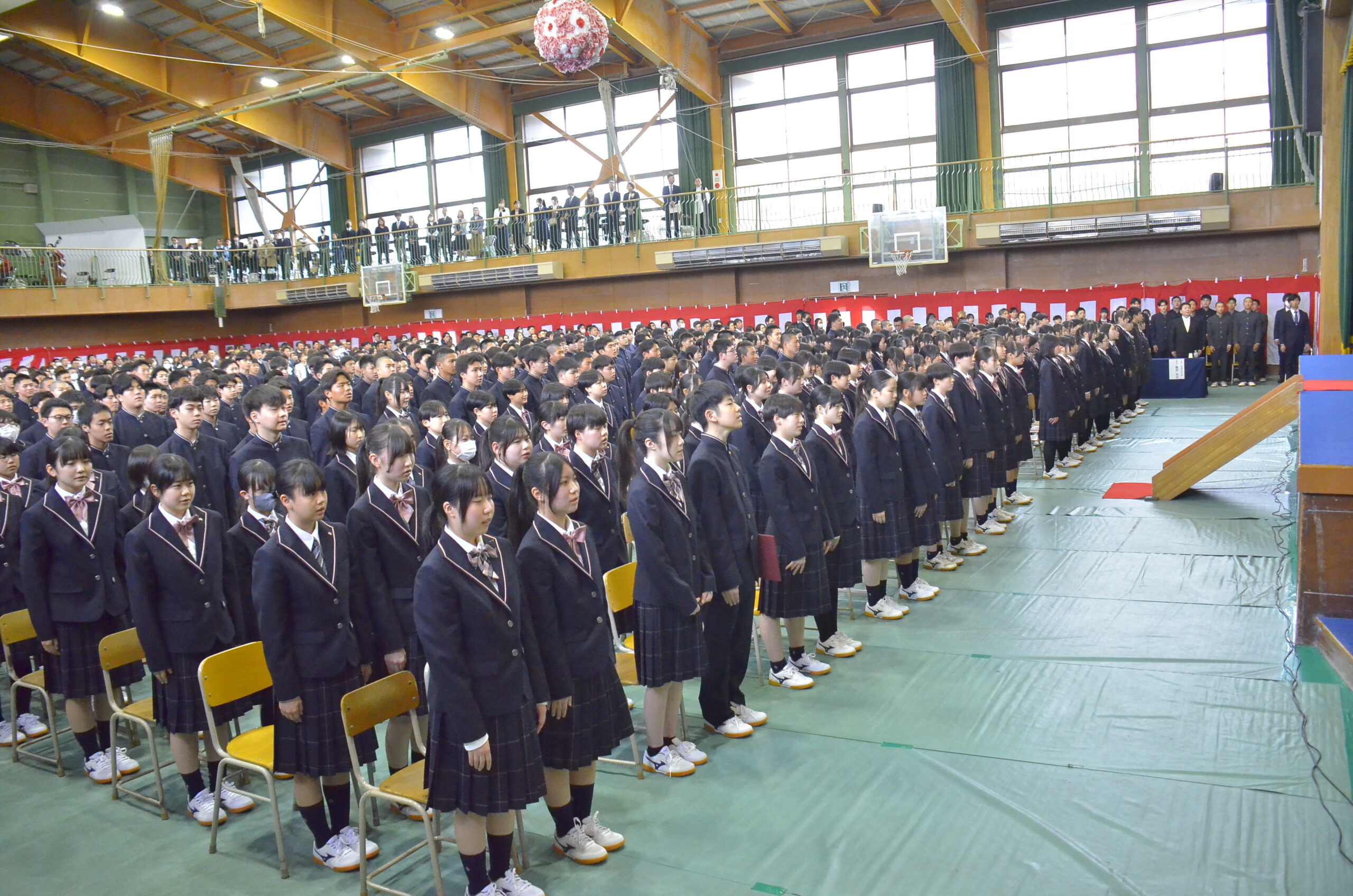 先輩たちの堂々とした歌声は、新入生の緊張を和らげるとともに、青森山田の一員としての自覚を促す素晴らしい響きとなりました。