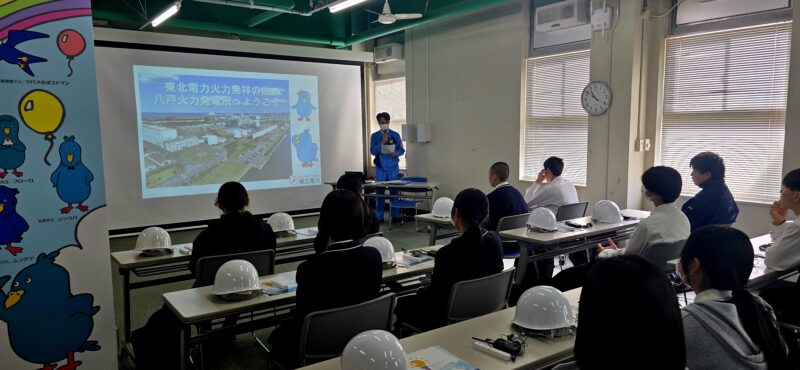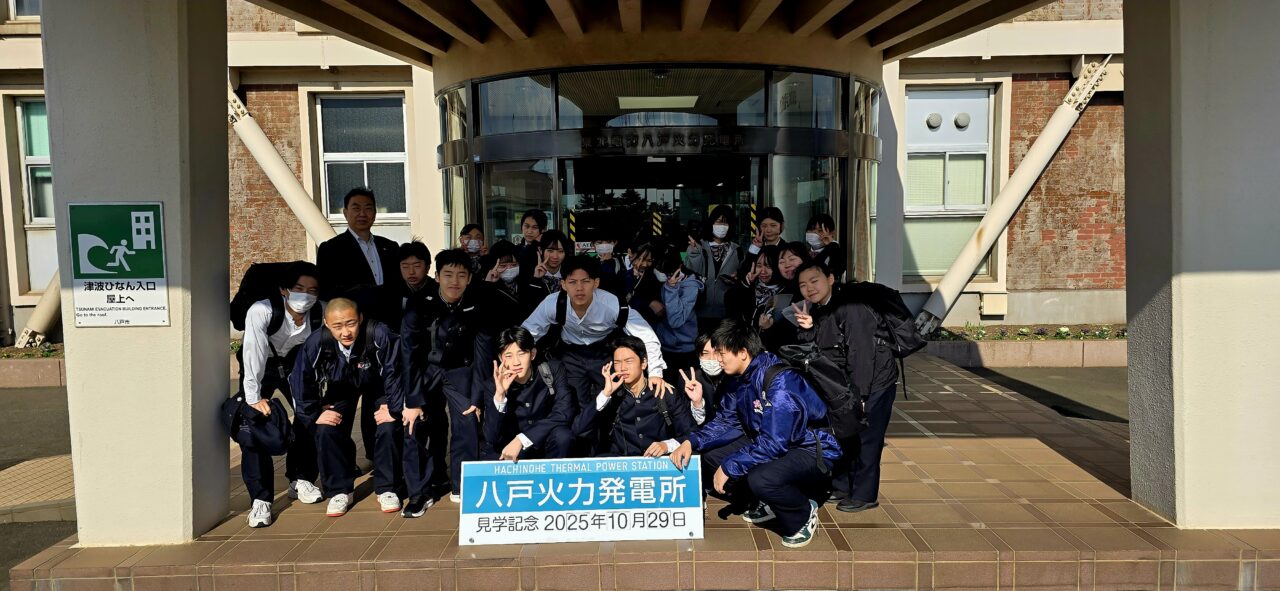 1学年普通科キャリアアップコースは、今年度から日本原燃株式会社と産学連携講座を実施しています。第三回目として、3組が「八戸火力発電所」へ、4組が六ケ所村の「ジェイテック訓練センター・六ケ所原燃PRセンター」へ見学に行きました。八戸火力発電所を見学した生徒の感想は、普段何気なく使っている電気が、発電所の人々の努力と技術によって供給されていることを知り、「電気のありがたさ」や「大切さ」を強く感じましたや、ガスタービンなどの巨大な発電設備を間近で見て、その規模の大きさに驚きましたなど、発電技術に興味を持った生徒が多かったようです。また、ジェイテック訓練センター・六ケ所原燃PRセンターを見学した生徒の感想は、実際の現場に近い環境を再現した設備や、多様な種類の機材が揃っており、単なる座学ではない実践的な訓練が行われていることに驚いたと話していました。次は、11月13日に3組が「ジェイテック訓練センター・六ケ所原燃PRセンター」へ、4組が「八戸火力発電所」の見学を計画しております。