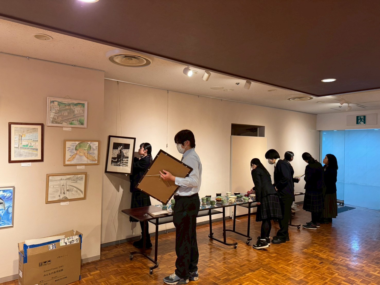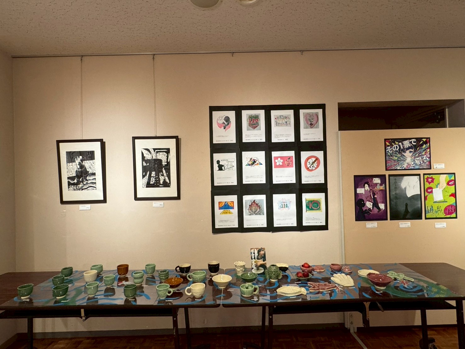 展示作品は、写真・書道・アクリル画に加え、クリエイティブアート専攻の生徒による版画・デッサン画・板柳(ばんりゅう)焼きの陶芸作品など、幅広いジャンルにわたる多彩な表現が並び、来場された皆様に本校の芸術教育の成果をご覧いただく貴重な機会となりました。