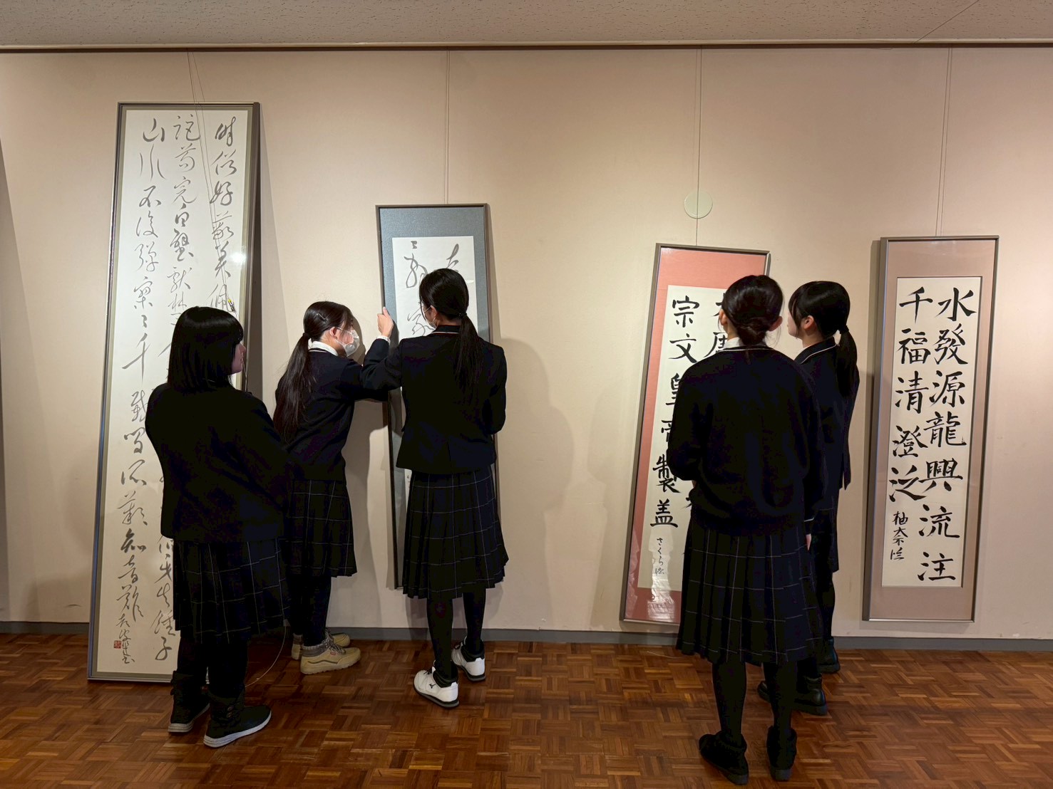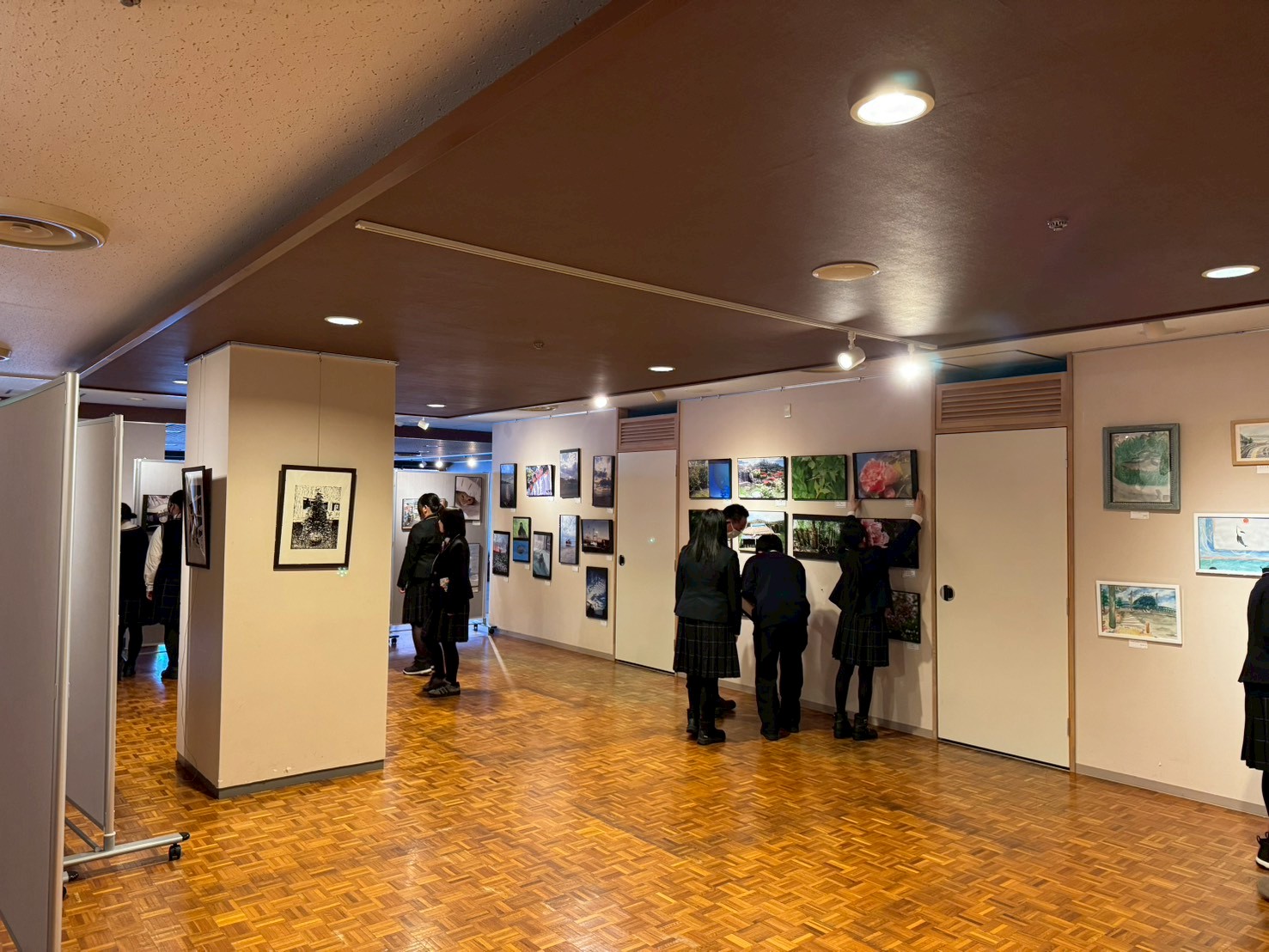 本展示会は、本校の写真部・書道部・美術部による合同作品展として、長年にわたり継続されてきた伝統ある企画で、今年で43回目の開催となります。今年度は、例年の三部の作品に加え、**今年度新設された「アートエクスプレッションコース クリエイティブアート専攻」**の生徒作品も展示することができ、展示内容は一層充実したものとなりました。