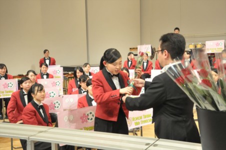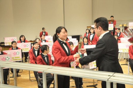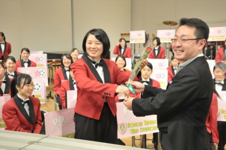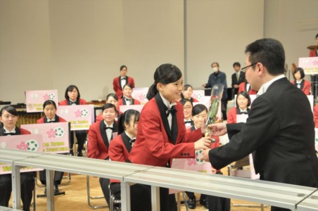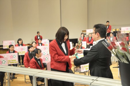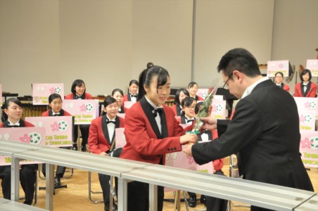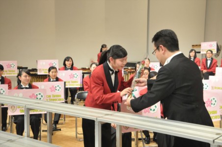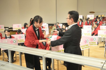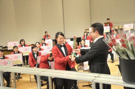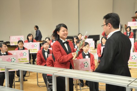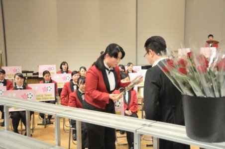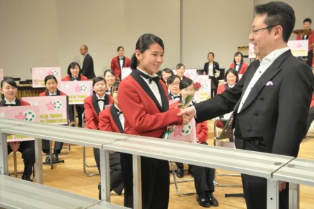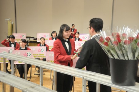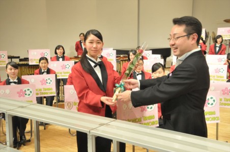 リハーサルで3年生の生徒へ顧問高橋先生から素敵なバラのプレゼント♪