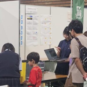内容は5月に慶應義塾大学で行われた「第11回日本気象学会ジュニアセッション」で発表された「日本海に発生する線状降雪帯を可視化して災害を防ぎ隊」という同じ説明を実験も含み体験ブースで発表をしました。質疑応答では来場した市民ら200名以上に説明と意見交換が行われ、来場者からは「分かりやすい。温暖化に関心が高まった。」などの多くの感想をいただき、生徒たちには今後の研究の励みになったようです。