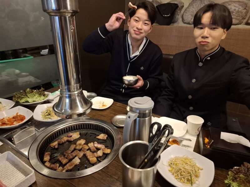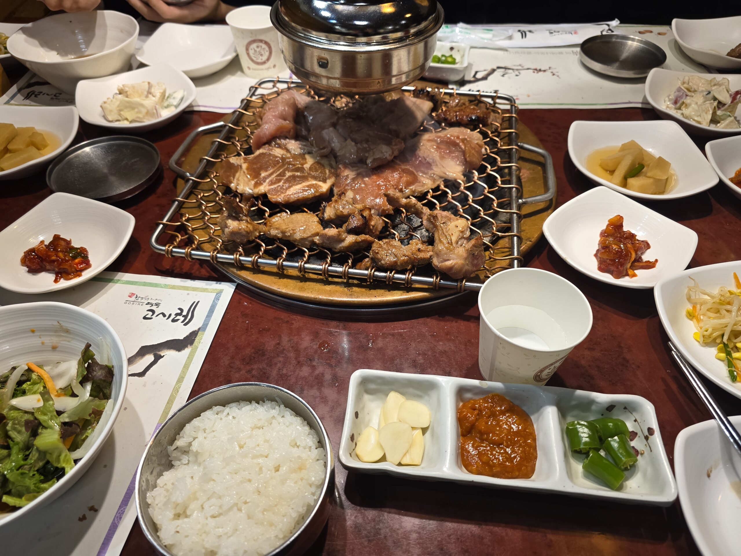 そして明洞で自由行動、夕食は味付き豚カルビをいただきました。