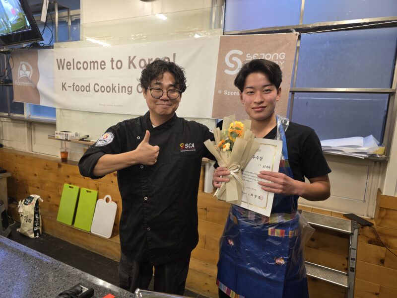午後は体験学習ということで韓国伝統料理キムチ作りに挑戦しました。