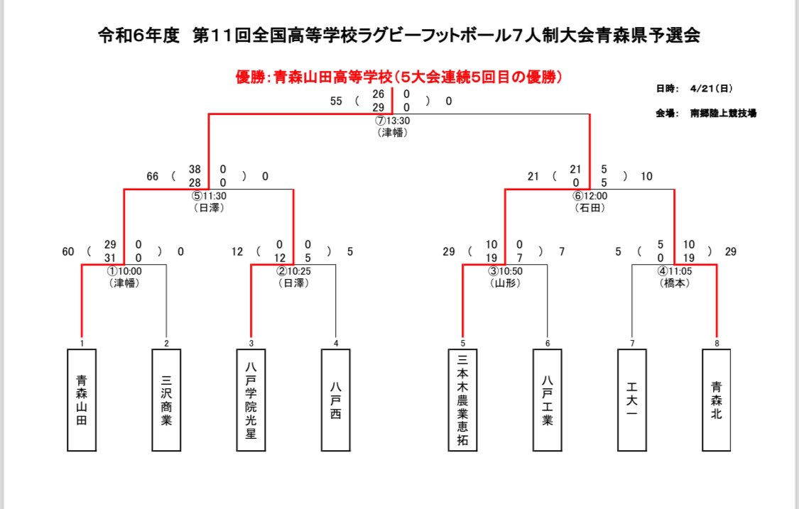 2024年4月21日 / 最終更新日 : 2024年4月21日 osanai 大会報告 全国7人制大会青森県予選 60 VS 0 三沢商業 66 VS 0 八戸学院光星 《決勝》 55 VS 0 三本木農業恵沢 5大会連続5回目の優勝を果たしました。 7月に行われる全国大会へ出場致します。 応援ありがとうございました。
